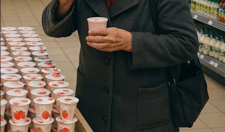 Того дня в супермаркеті панувала майже тиша. Холодильники монотонно гули, кілька людей неспішно рухались між рядами. Ніхто не помітив одразу жінку в темному пальті та яскравій червоній хустці, яка підійшла до стелажа з молочними продуктами й обережно оглянулась навколо. Переконавшись, що поруч нікого немає, вона спокійно відкрила йогурт і почала їсти прямо там, немов це було її законне право.