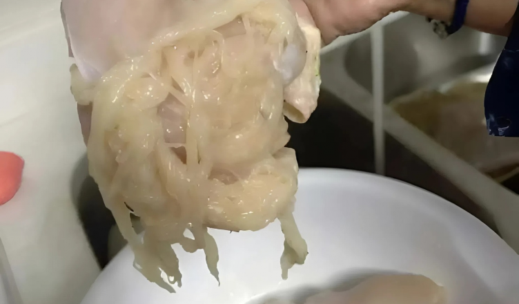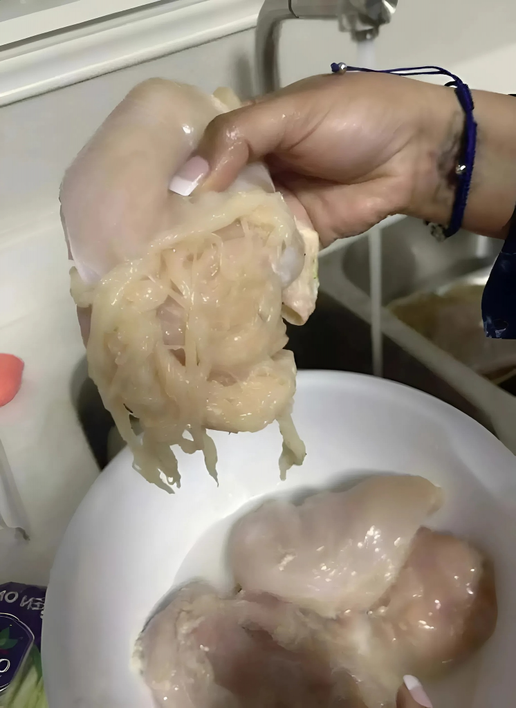 Вдома, як завжди, вирішив промити м’ясо під холодною водою. І саме в цей момент мене щось насторожило. Філе поводилося дивно. Воно не було щільним, як зазвичай, а ніби… розшаровувалося. Я торкнувся його пальцями — і воно почало розпадатися на тонкі волокна, схожі на нитки.