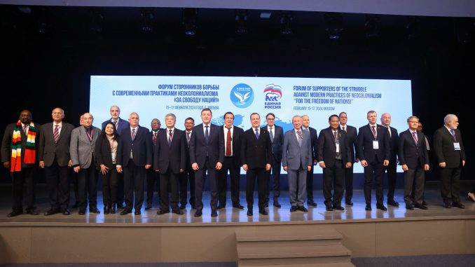 Փետրվարի 15-17-ը ՌԴ մայրաքաղաք Մոսկվայում տեղի է ունենում «Ընդդեմ գաղութատիրության. Հանուն ազգերի ազատության» հիմնադիր համաժողովը, որին Ռուսաստանի Դաշնության կառավարող «Եդինայա Ռոսիա» կուսակցության հրավերով մասնակցում է նաև «Բարգավաճ Հայաստան» կուսակցության պատվիրակությունը՝ նախագահ Գագիկ Ծառուկյանի գլխավորությամբ։ Համաժողովի շրջանակներում «Եդինայա Ռոսիա» կուսակցության նախագահ Դմիտրի Մեդվեդևն այսօր հանդիպել է կազմկոմիտեի անդամների և պատվիրակությունների ղեկավարների հետ։ Դմիտրի Մեդվեդևը խոսել է ֆորումի նպատակների և գործընկերության մասին, հայտնել, որ կուսակցությունը հուլիսին Վլադիվոստոկում կանցկացնի «Հանուն ազգերի ազատության» ֆորումի մշտական հանձնաժողովի նիստ։ Մեդվեդևը փոխանցել է, որ այս պահին դեռ «Եդինայա Ռոսիա»-ն շարունակում է հավելյալ հայտեր ստանալ ֆորումի կազմկոմիտեին միանալու համար։
